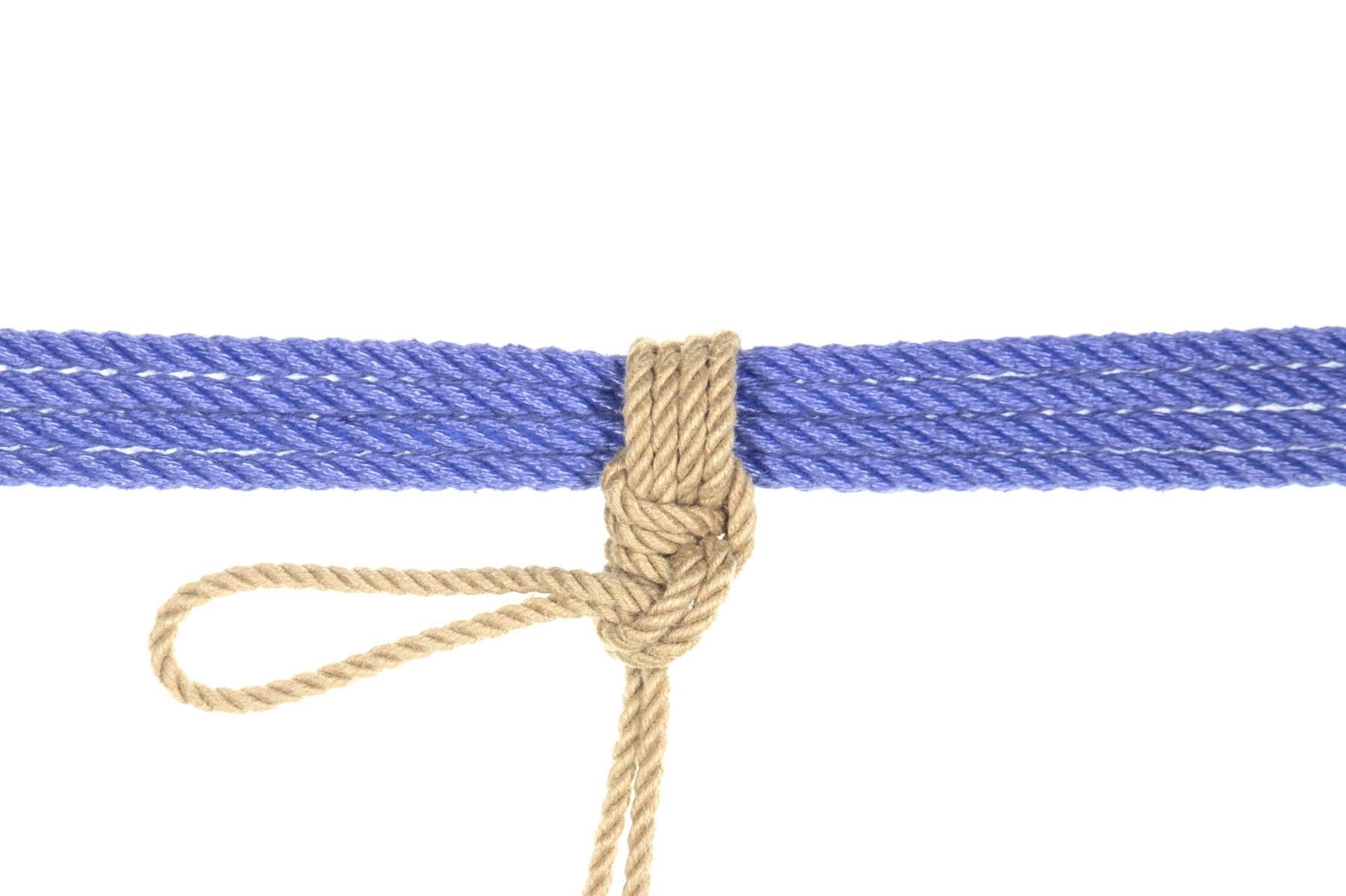 A tight finish cinches the knot of the hanger against the harness. We use a modified two half hitches knot for our tight finish.