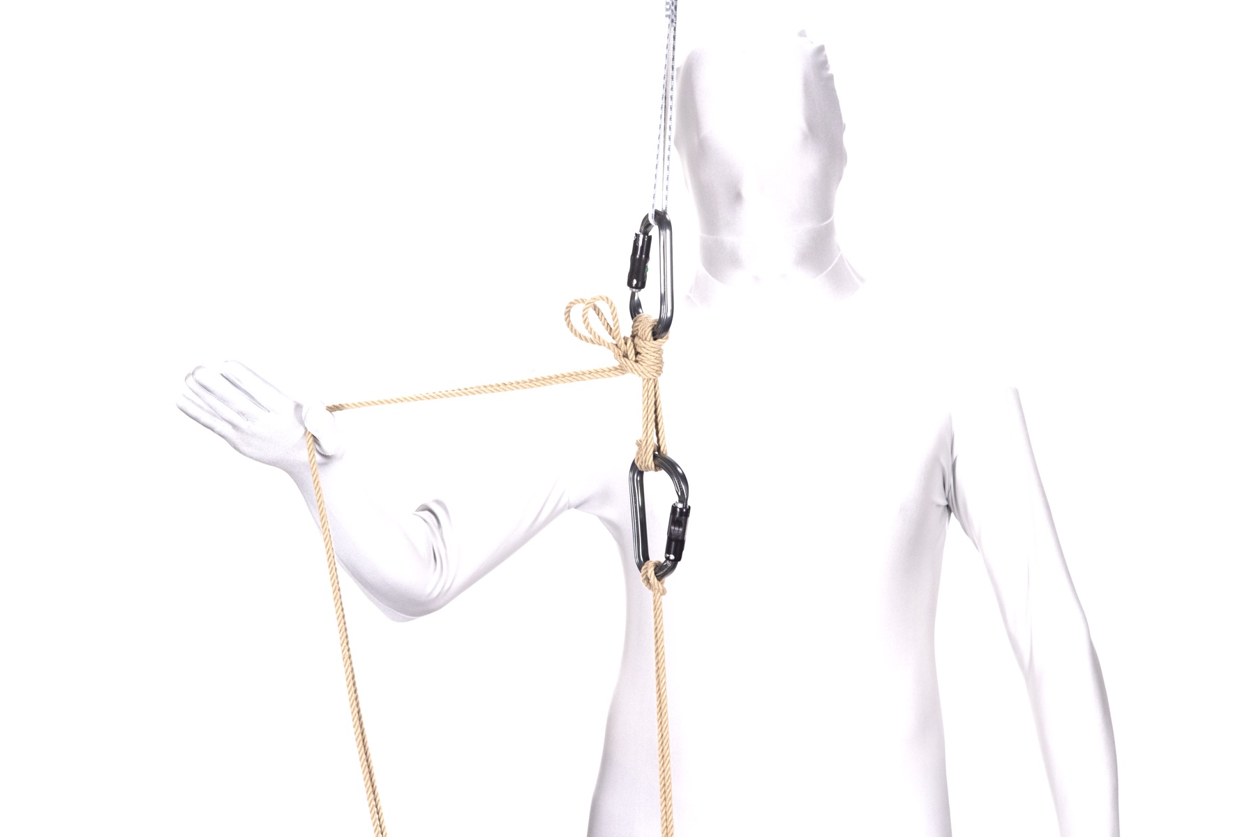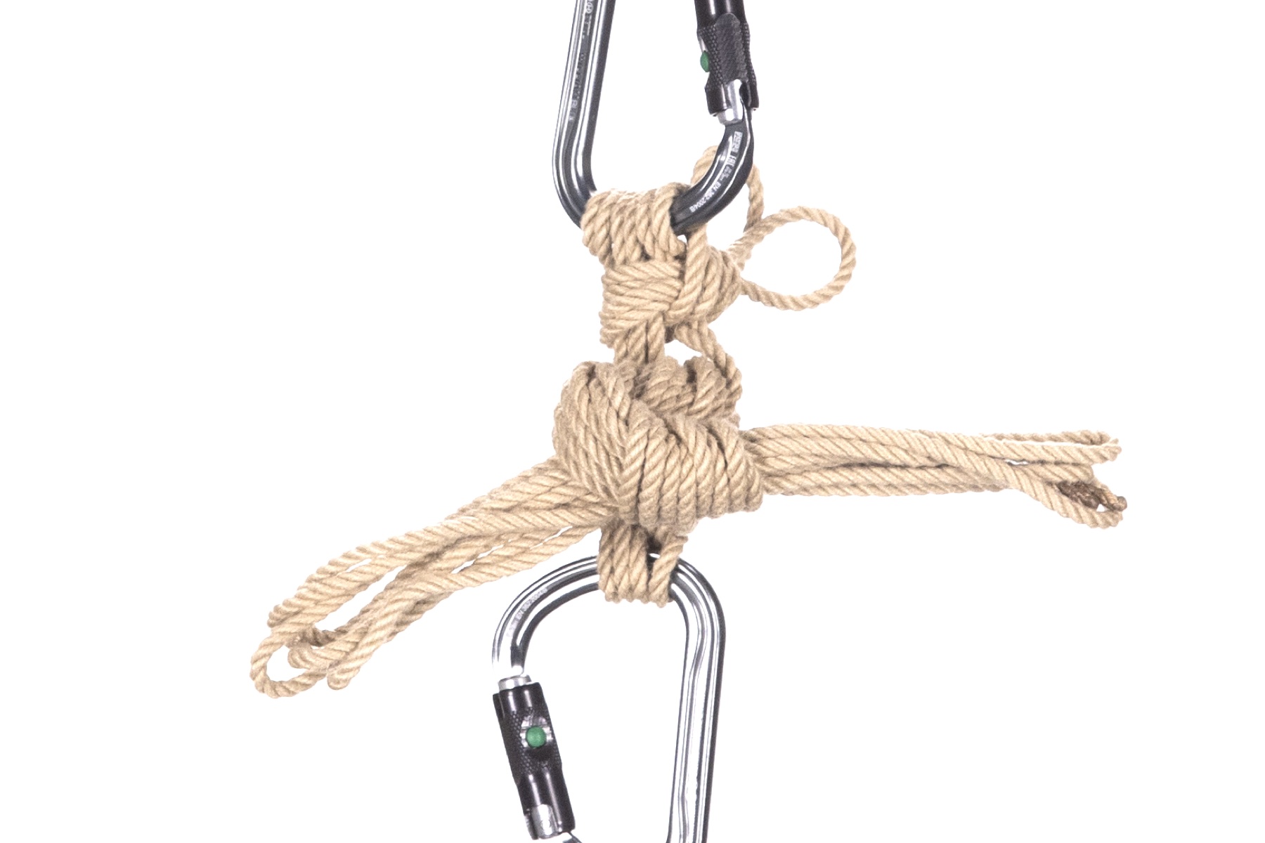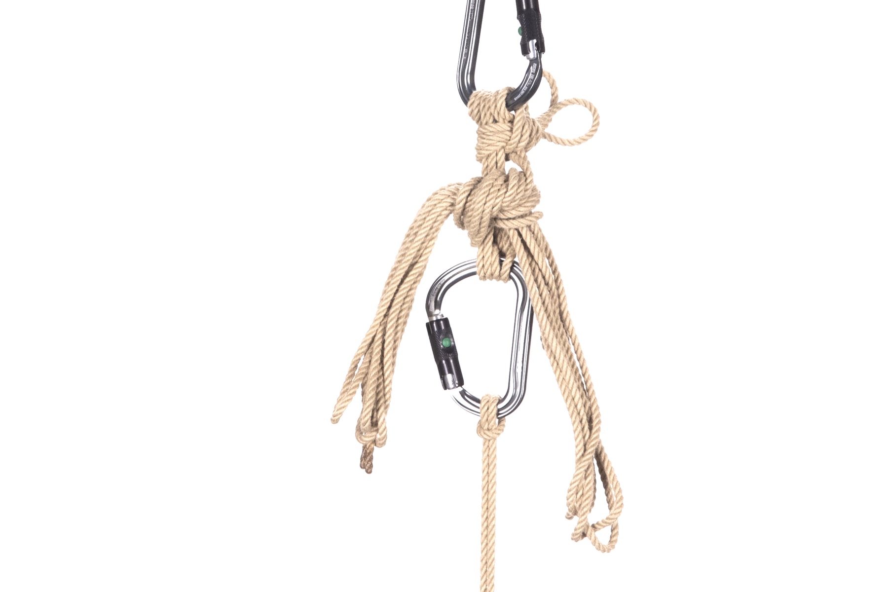 4Grab the rope end with your left hand and equalize the rope on both sides of the upline.