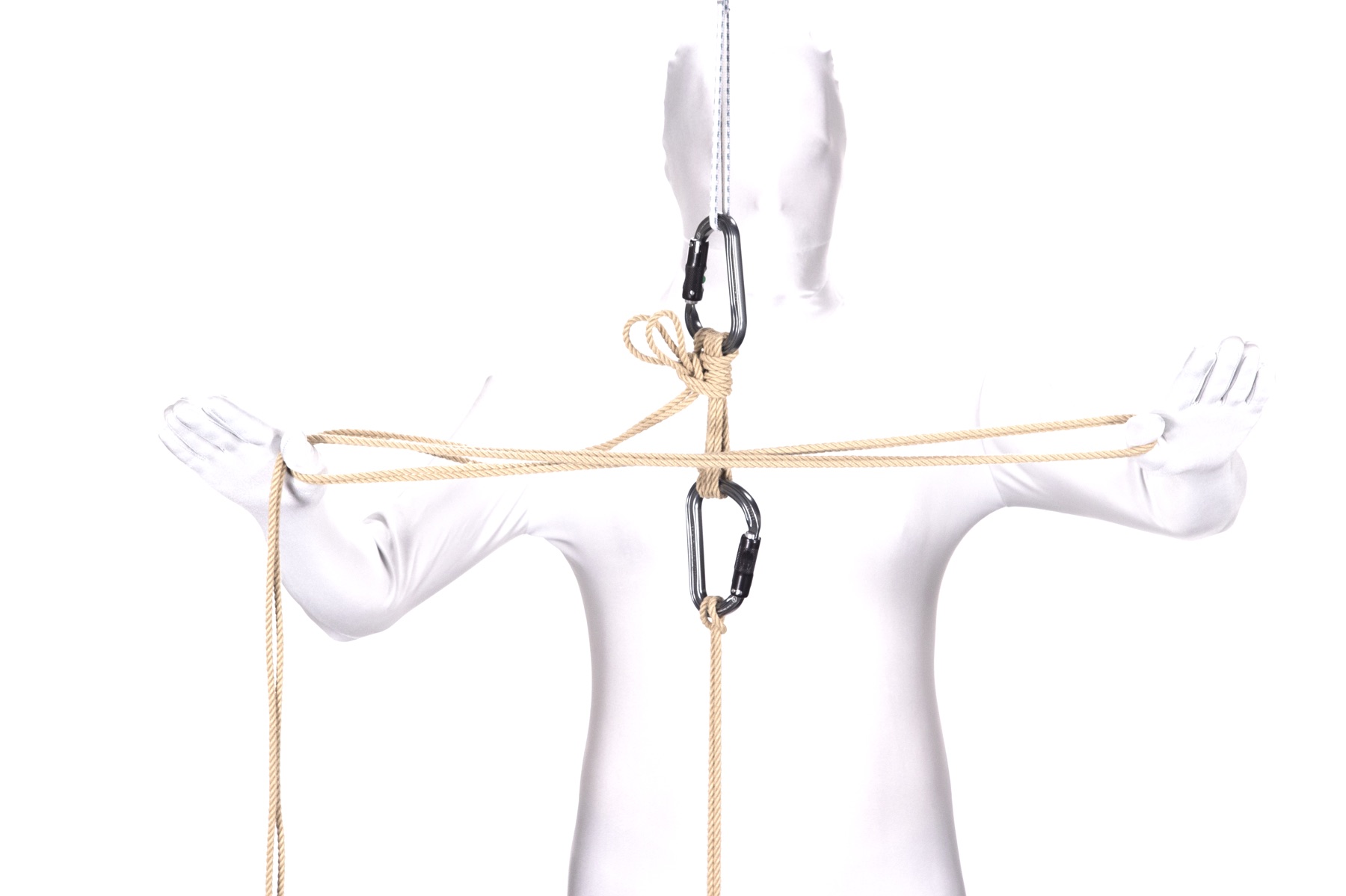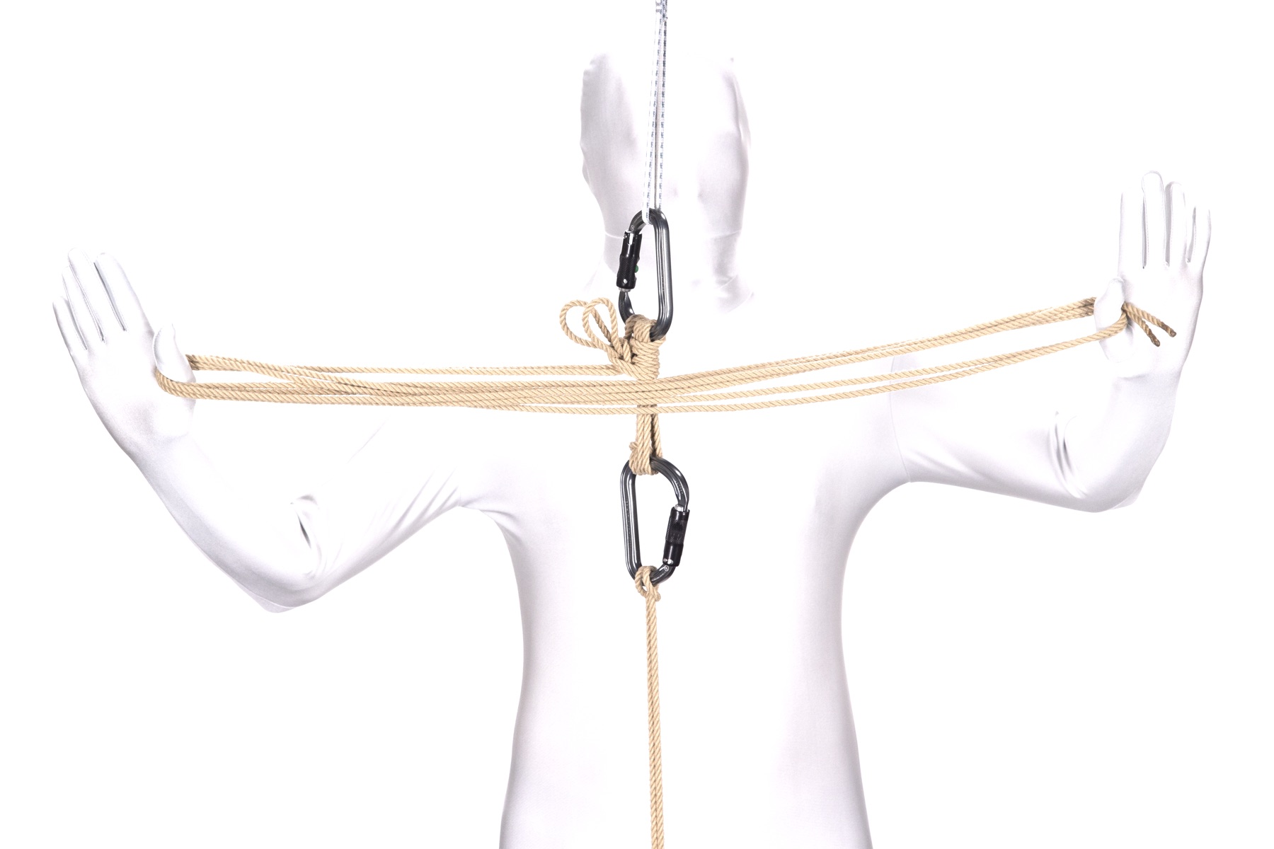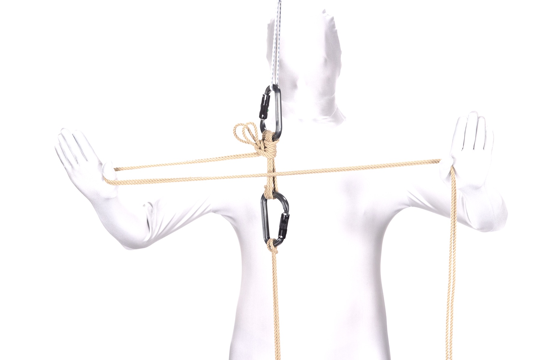 4Grab the rope end with your left hand and equalize the rope on both sides of the upline.