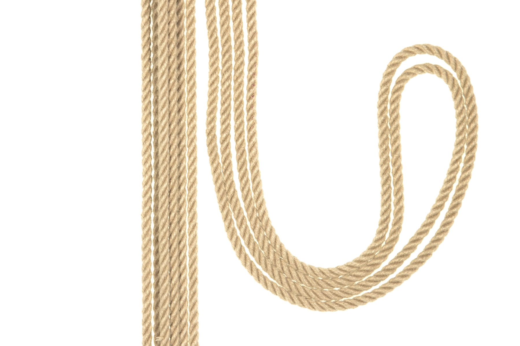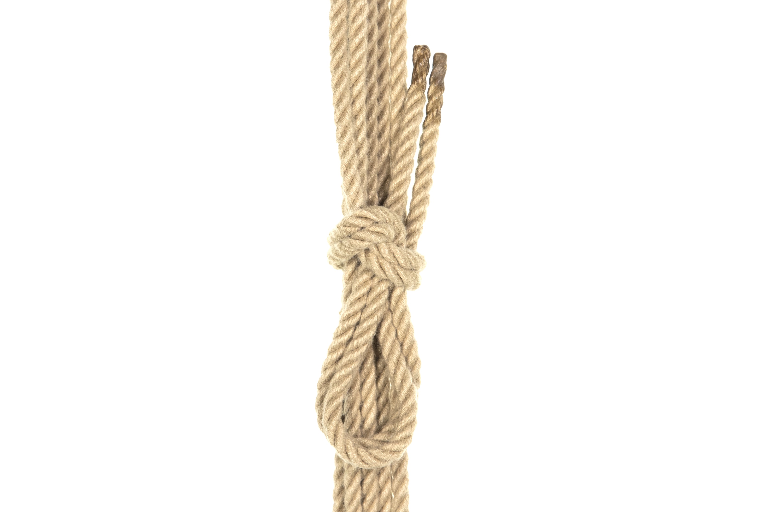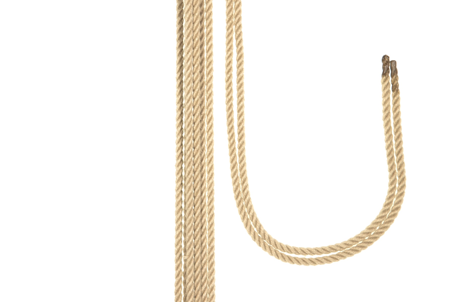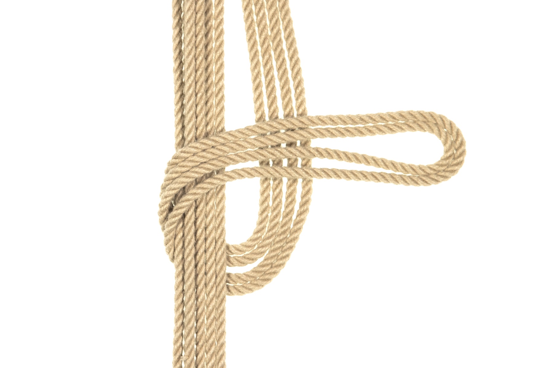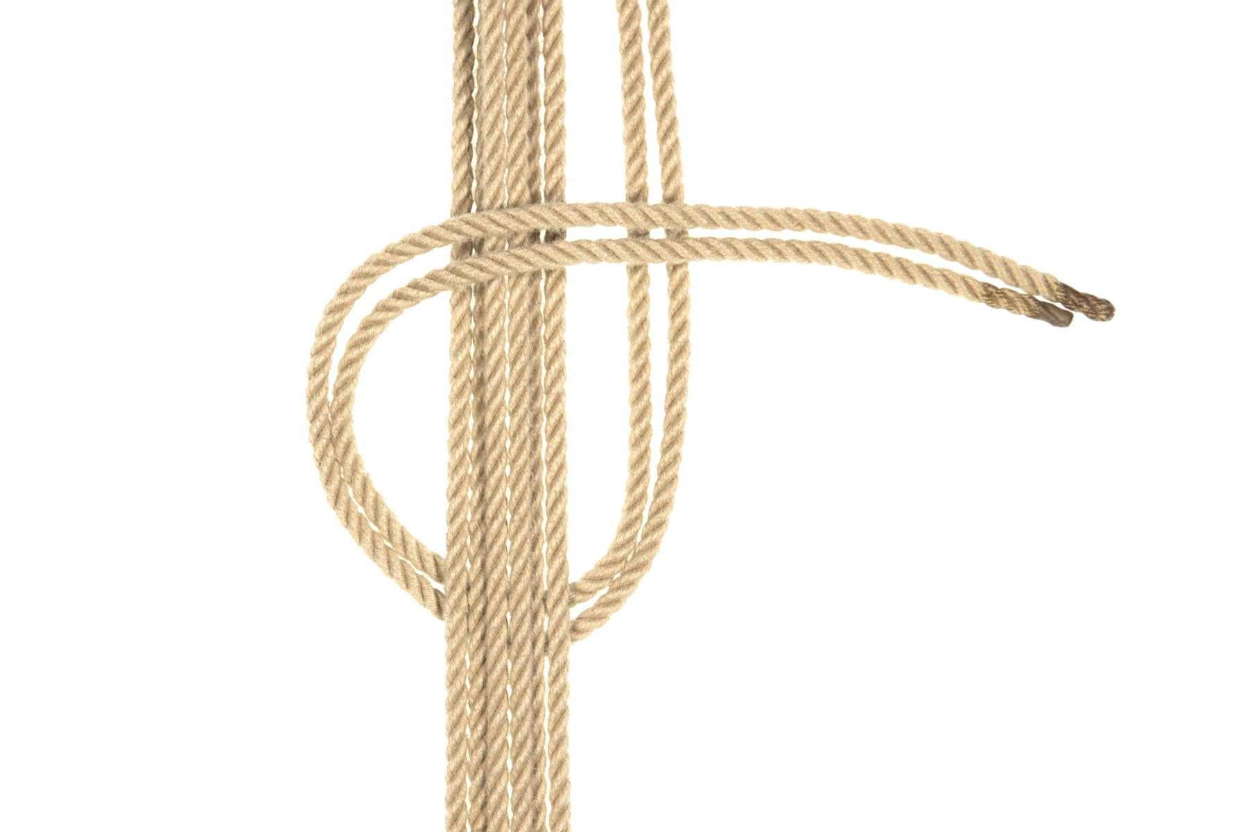 38" before the end, make a 90° bend and go behind and around around the upline, crossing over the vertical part of the leftover line.
